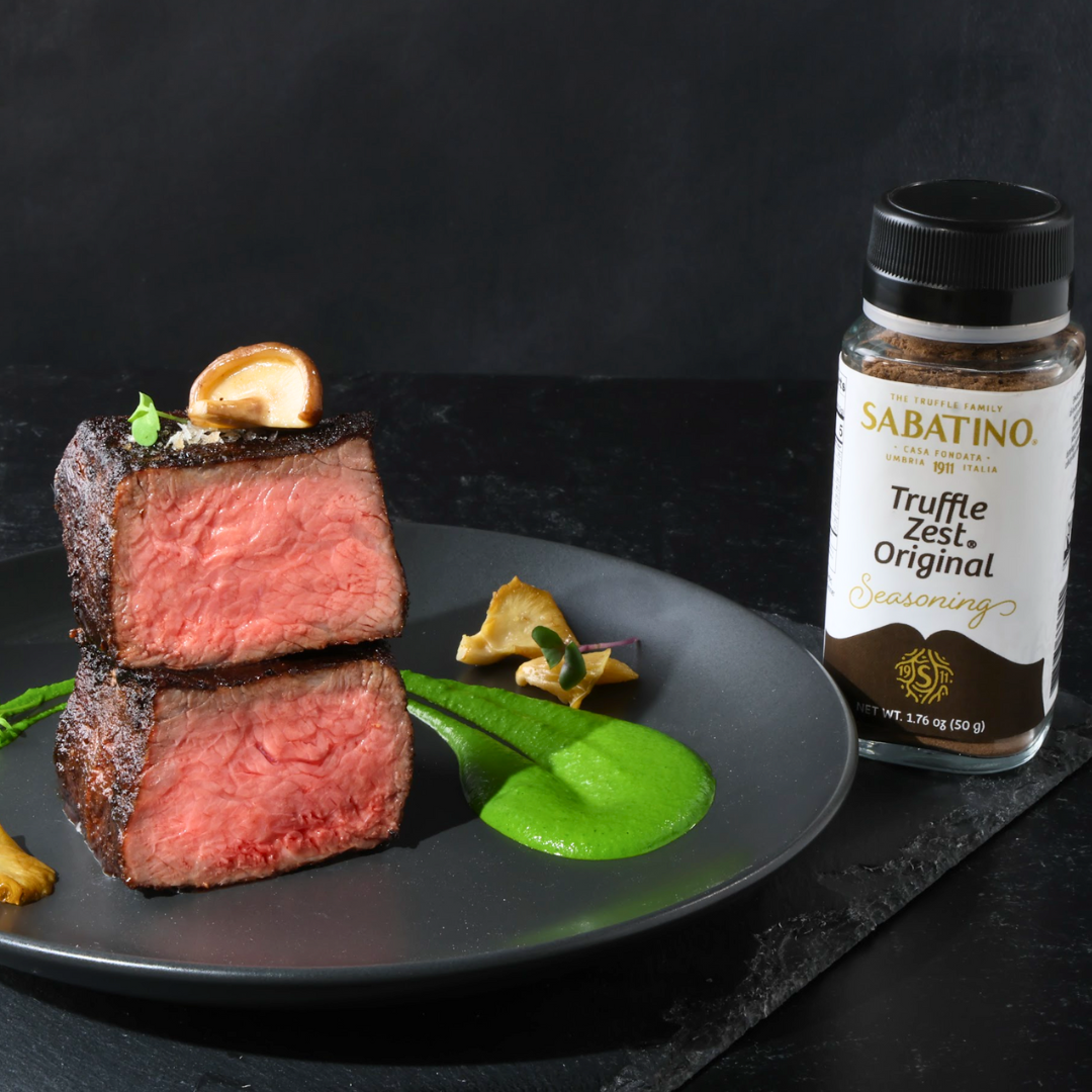 - Steak: Preheat the oven to 325. Trim any excess fat from the steaks and season with salt and pepper and 1 tbsp Truffle Zest®. Rub to coat both sides.
